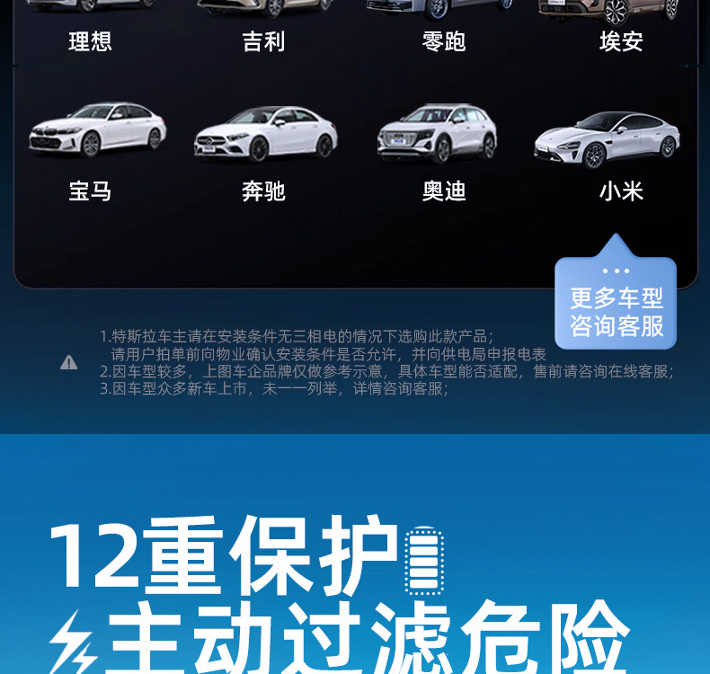 新能源电动汽车充电桩家用7KW通用32A比亚迪特斯拉长安吉利充电枪