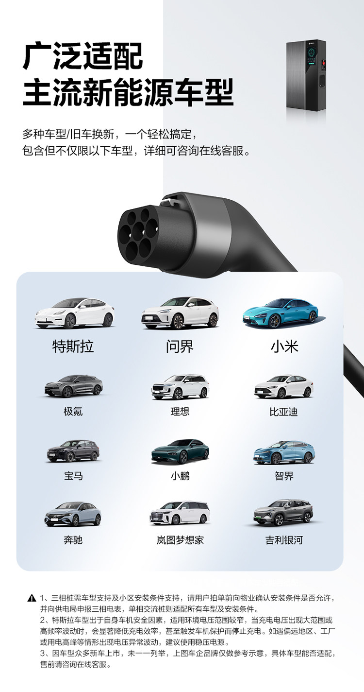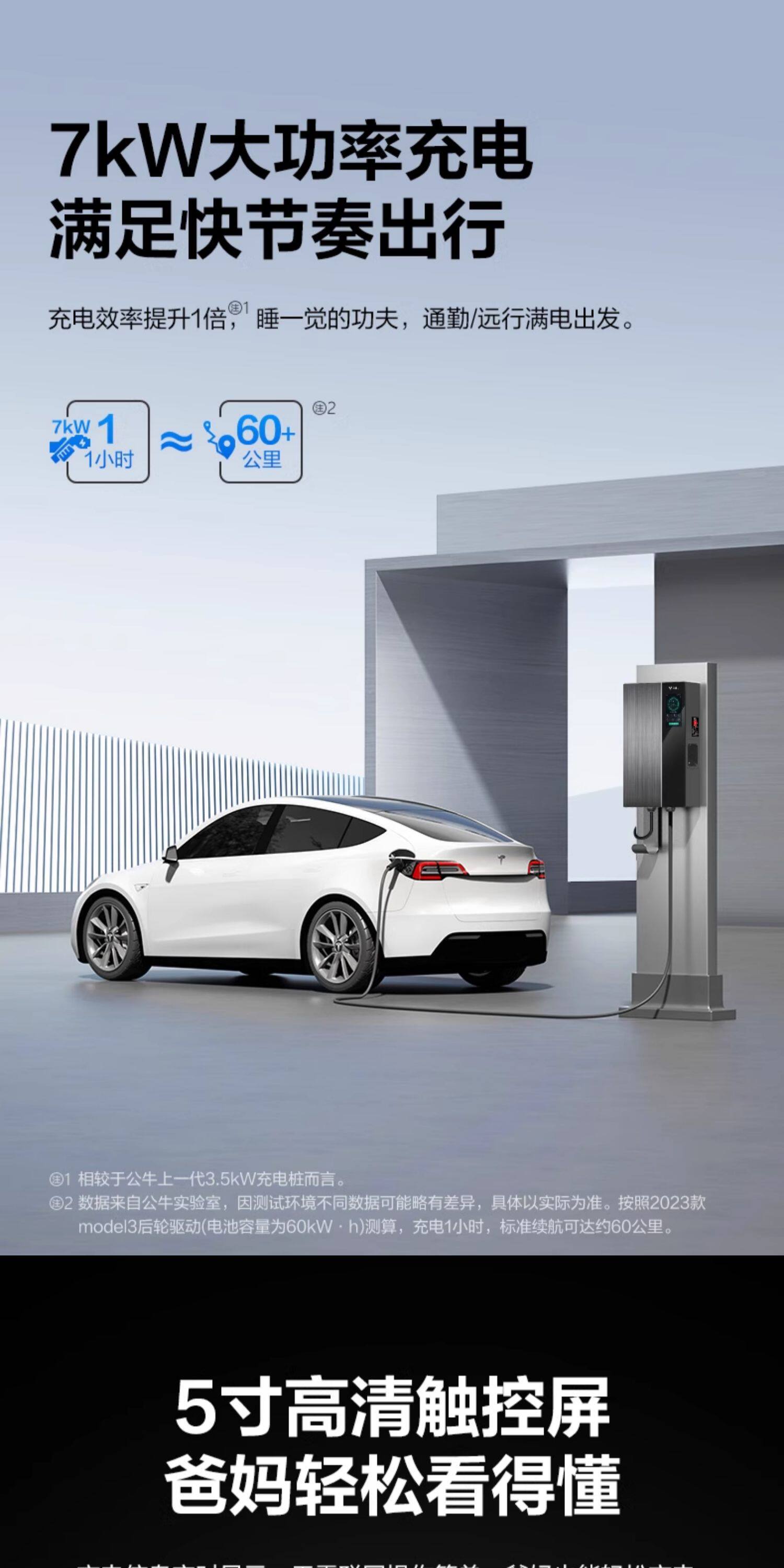 公牛无极充电桩适用于特斯拉电动汽车通家用交流充电器7/11/21kw