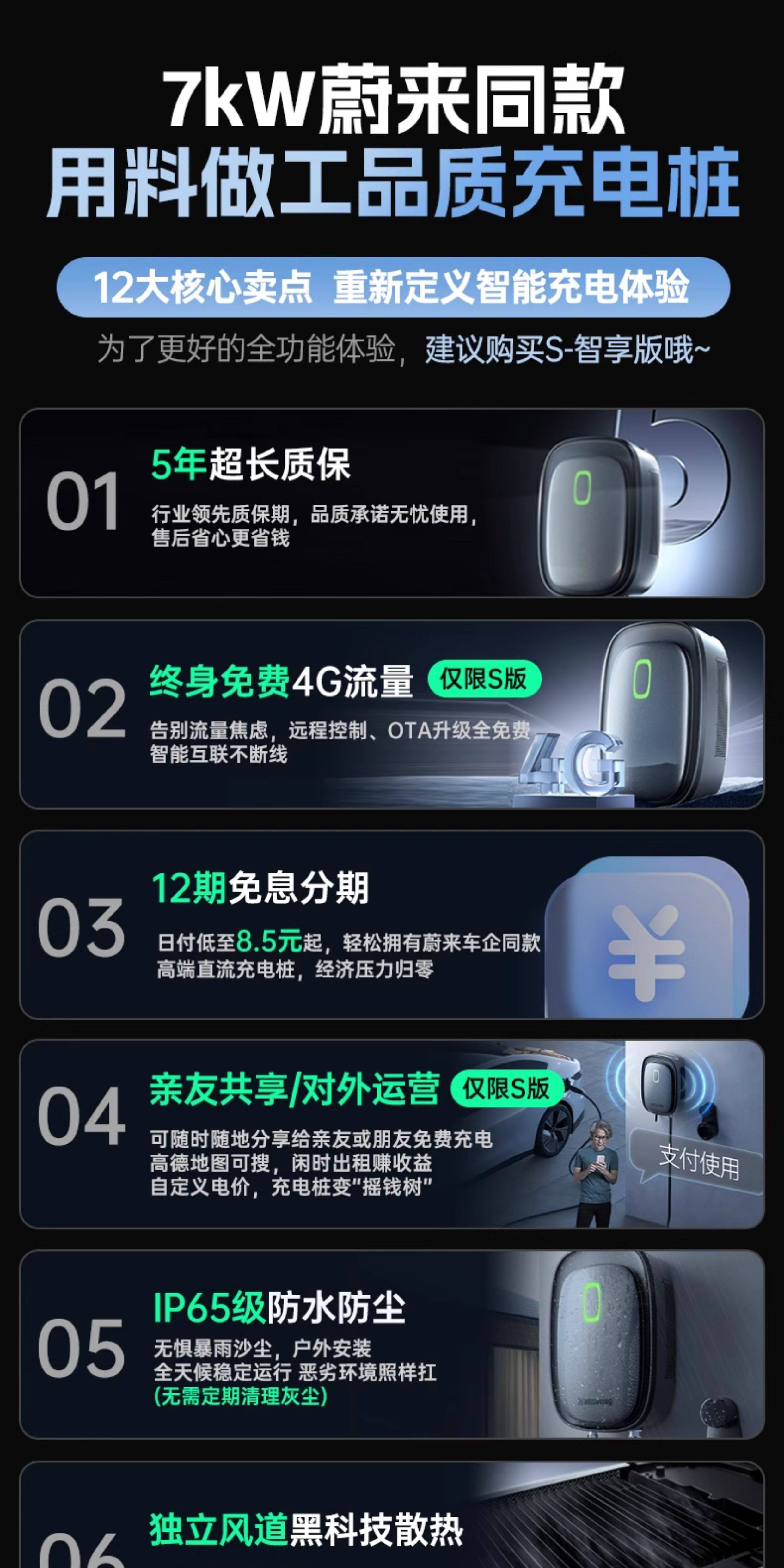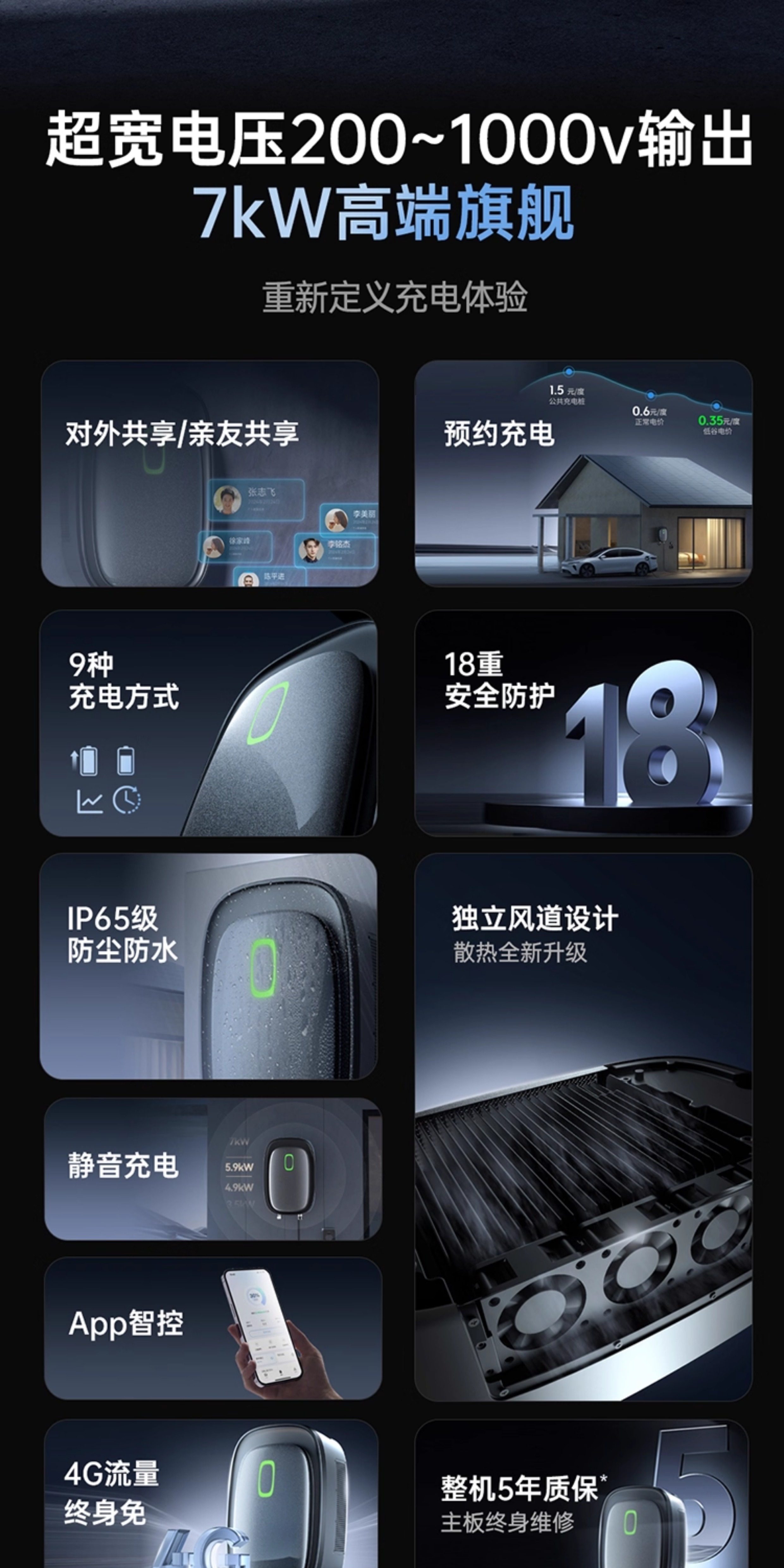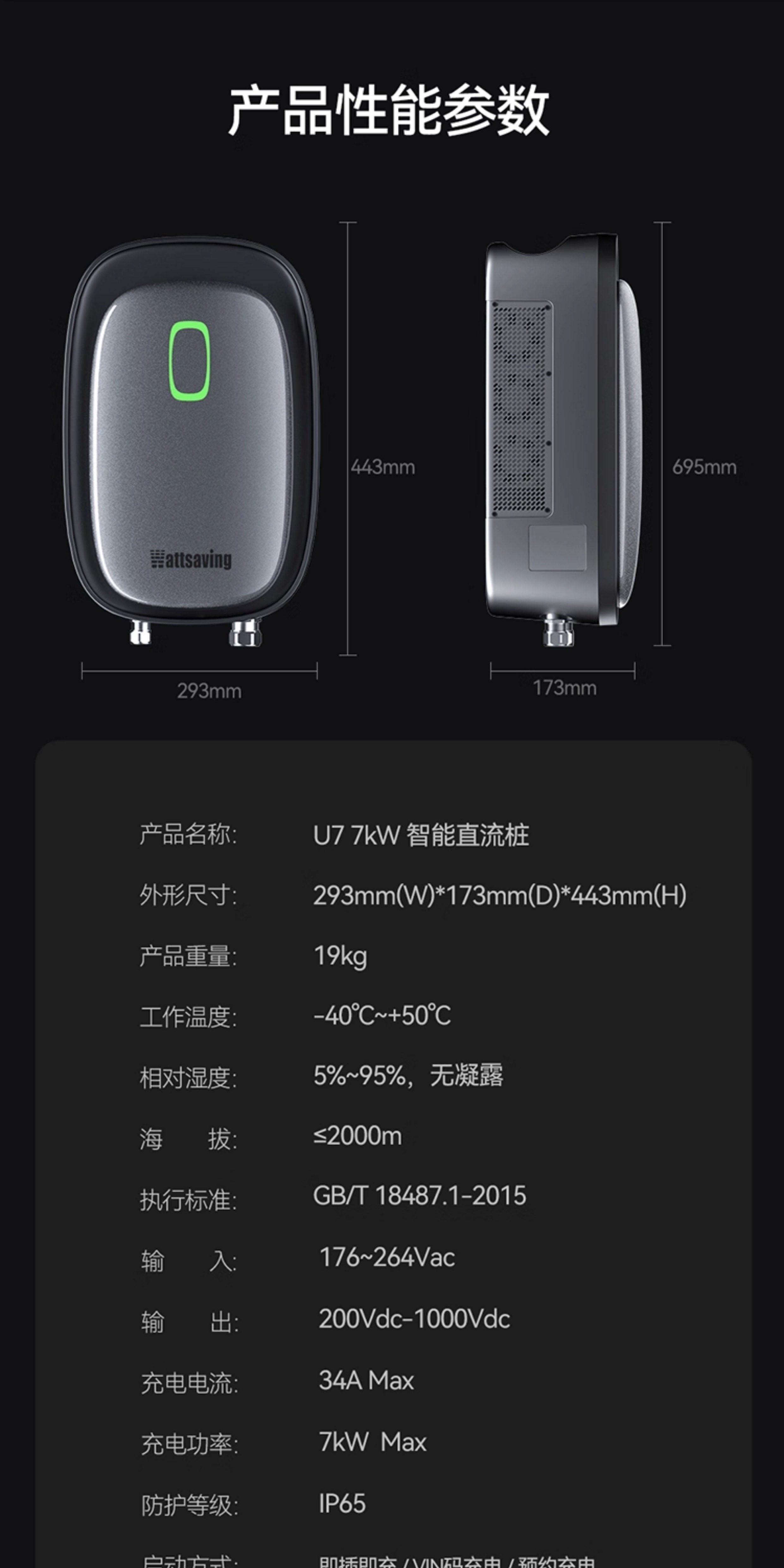 能效充电桩7kW直流充电桩家用快充9孔充电桩九孔适用蔚来充电桩U7